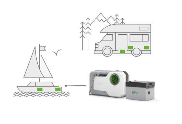 • as an emergency power generator for working on the move. Whether in the camper, on the boat or in the (garden) hut, you decide where your EFOY is used.